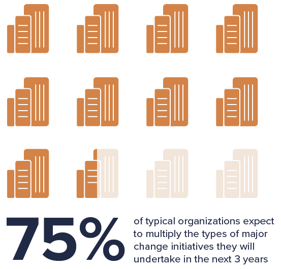 In fact, an average organization today has gone through five major firmwide changes in the past three years — and nearly 75% expect to multiply the types of major change initiatives they will undertake in the next three years. Leading and implementing a successful organizational change is a challenge all executives must be prepared to undertake.